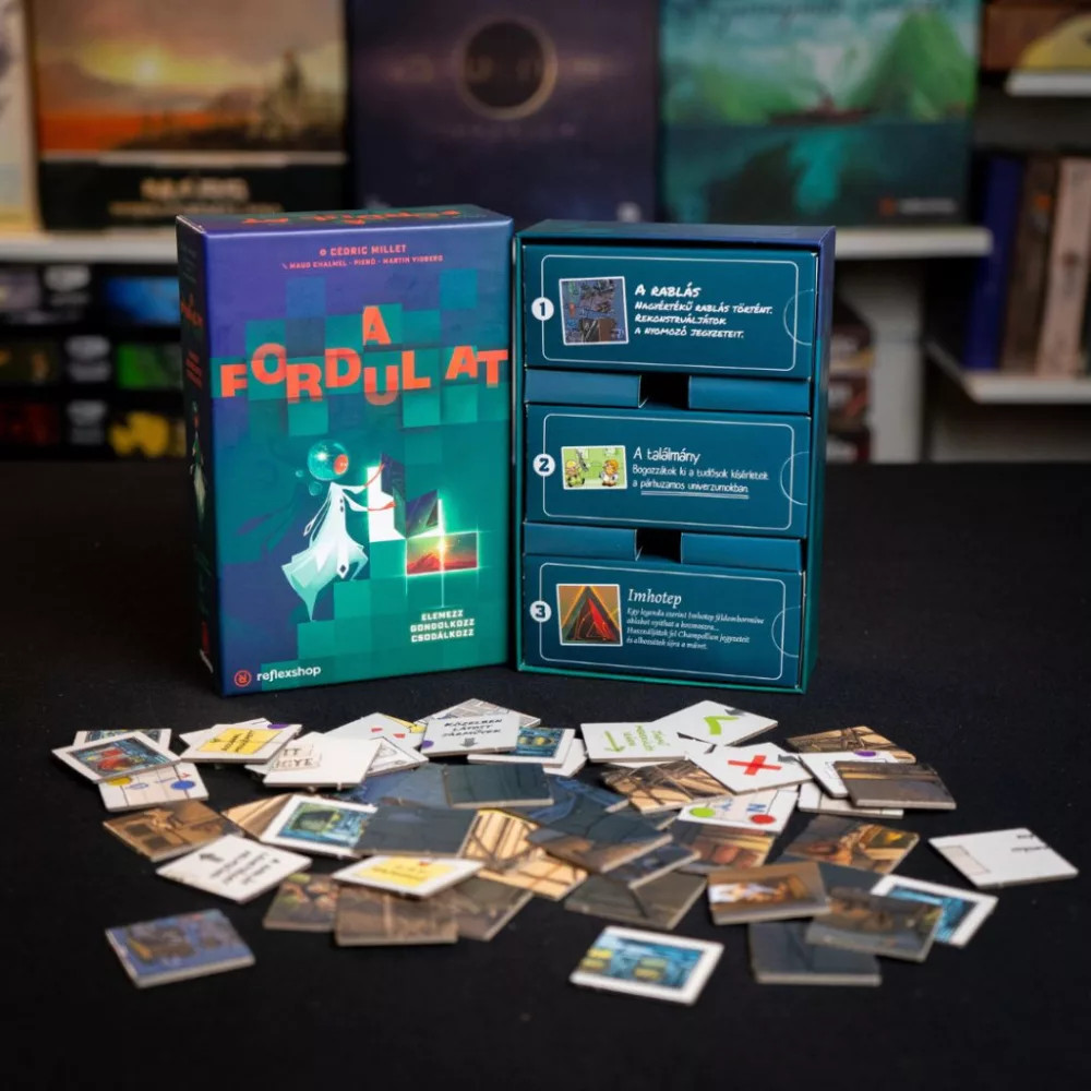 Ismered azt az érzést, amikor valami nem akar összeállni – aztán hirtelen minden értelmet nyer? A fordulat pontosan ezt a pillanatot adja át. Egy kooperatív logikai társasjáték, ahol minden döntés és minden apró felfedezés közelebb visz a megoldáshoz. Ahogy egyre több részlet kerül a helyére, lassan kirajzolódik előttetek a teljes kép – és a végén, amikor mindent sikerül összerakni, elérkezik a nagy pillanat: a fordulat, amikor az egész összeáll egyetlen, tökéletes egésszé.