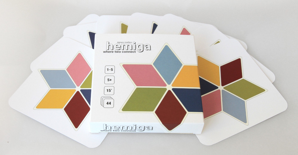 Egyszerű és nagyszerű mintafelismerős kis csoda, ami a nagyon kevés szabály, szuper élmény kategóriába tartozik. Csapjatok fel 9 kártyát, és keressetek olyan párokat, amik teljesen azonosak, vagy egymás tükörképei! (A játék egyszerűsíthető a szürkeárnyalatos hátoldalt használva, de a színes oldalnál is van egyszerűbb és több kihívást jelentő mód.)