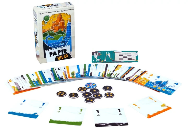 A Papírvilág egy különleges családi társasjáték, amelyben rétegről rétegre építheted fel a saját 3x3-as papírtájadat. A játékosok célja, hogy színben vagy számban összeillő kártyákat pakoljanak egymásra és egymás mellé, miközben betartják a növekvő számsorrendet – minél magasabb a torony, annál több pontot ér!
