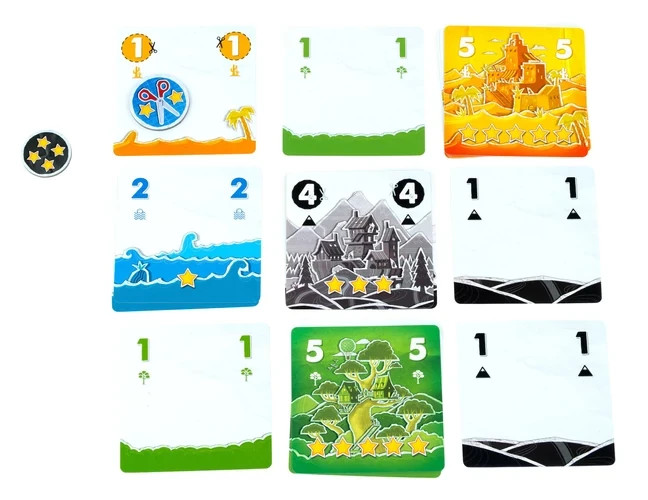 Egyedi tájképet építhetsz egy mindössze 3x3-as rácsban – de nem akárhogyan! Rétegről rétegre haladva egyre értékesebb lapokat rakhatsz le – sőt, egyszerre akár többet is!