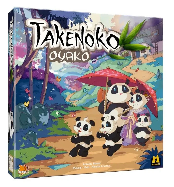 A Takenoko csodaszép, izgalmas családi társasjáték. A játékosok az akcióikkal irányíthatják a kertészt, aki bambuszokat növeszt, a mindig éhes pandát, aki felfalja a bambuszokat, illetve építhetik a kertet, hogy legyen hol nőnie a bambusznak...